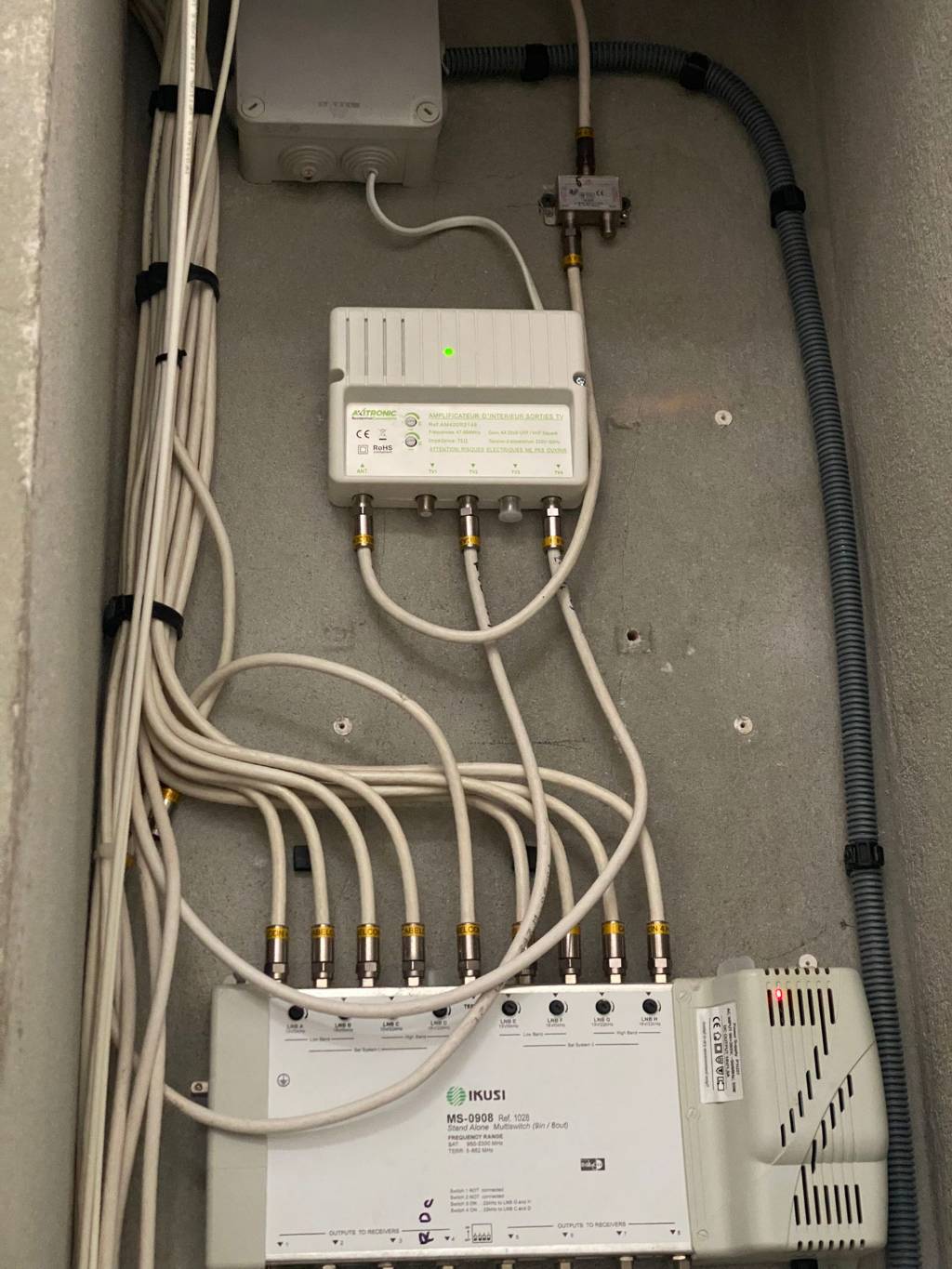 Aujourd’hui, nous avons réalisé une opération complète de remplacement de préamplis de télévision afin d’améliorer la qualité de réception d’un réseau d’antennes.